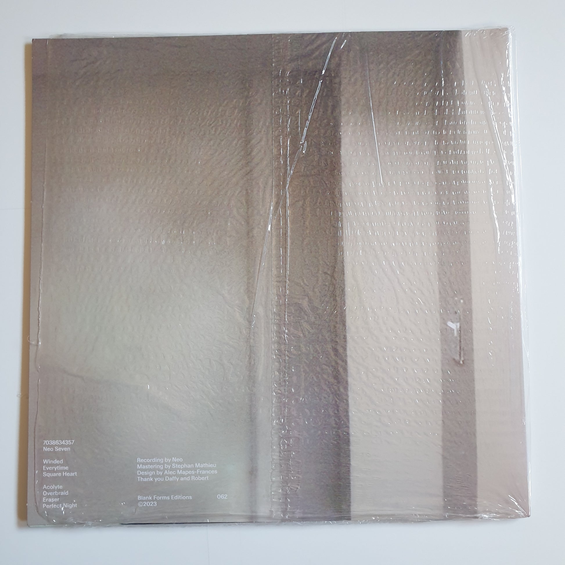 "Within a runtime of just over thirty minutes, Neo Seven contains a spare, beautiful, and raw journey through the artist's emotive, psychologically-charged ambient songwriting. The album’s seven tracks bleed into and out of one another, continually forming and deforming between soundscape, song, and silence."